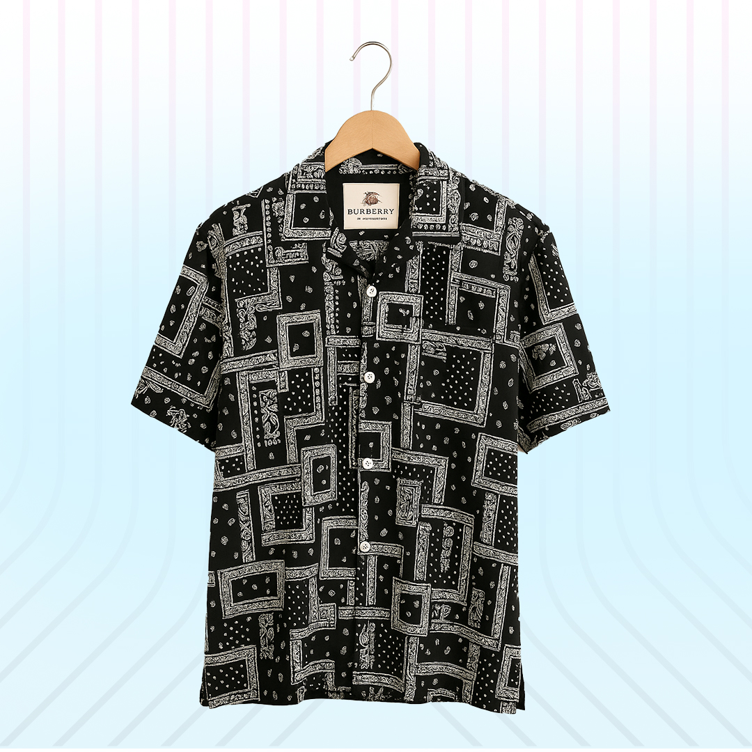 Unleash your inner style icon with this bold Bandana Patchwork Cuban Shirt. Featuring a striking black and white design, this shirt combines classic paisley motifs with a modern patchwork layout, creating a look that’s both timeless and contemporary. It’s the perfect statement piece for any wardrobe.